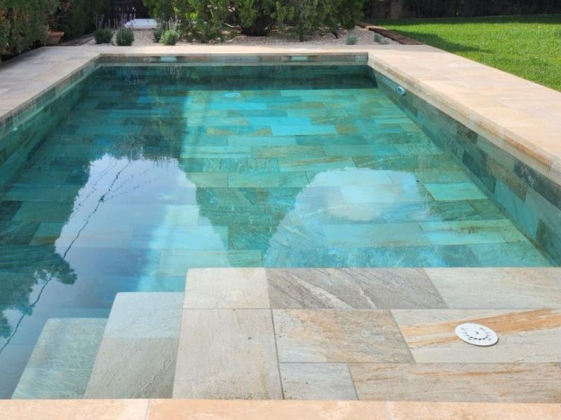 Por otra parte, también se usa mucho en zonas de alrededor de la piscina. Uno de los principales beneficios de aplicar mortero autonivelante en el perímetro de una piscina es su capacidad para corregir desniveles y proporcionar una base perfectamente lisa antes de la instalación del pavimento final. Esto es clave para evitar acumulaciones de agua, mejorar el drenaje y garantizar una mayor seguridad al reducir el riesgo de resbalones. Además, este sistema es compatible con diferentes tipos de revestimientos, como porcelánicos antideslizantes, piedra natural o pavimentos especiales para exteriores.